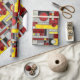 Dieses Geschenkpapier hat ein quadratisches Deko-Muster in digitalem Farbglas. Ein farbenfrohes geometrisches Design in Rot, Gelb und Schwarz. Ein schönes Verpackungspapier, um Ihre Geschenke zu bedecken. Sie können das Muster auf diesem Verpackungspapier größer oder kleiner machen.
