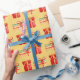 Rotes, gelbes Weihnachtsgeschenk Gelbes Umschlagpa Geschenkpapier