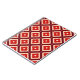 Ein nahtloses künstlerisches Muster mit geometrischen roten, orangen und beigen Formen, die miteinander verbundene Sternmotive bilden.