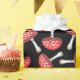 Ursprünglicher Kunstentwurf roten und weißen Fliegen-Blätterpilz oder Wulstling muscaria vermehrt sich durch Künstler Carolyn McFann zwei des schnurrenden Katzen-Studios explosionsartig, das auf einer Qualitätsrolle des Packpapiers für Pilz und andere Pilzfans gedruckt wird.
