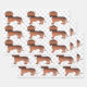 Desteis originelle Cartoon-Illustration eines bezaubernden glatten Haar roten Fell Farbe Dackel züchten Hund. Das Hundedesign wird neunmal auf jedem Blatt platziert. Der Hintergrund weist ein Muster grauer Hundepfoten auf.