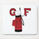 Ein Golfentwurf auf Golf spielenden T - Shirts, Hoodies, Tassen, mousepads, Taschen und mehr mit einer roten Golftasche, einem Verein, einem Golfball und einem Text, der "Golf" liest.