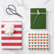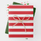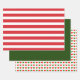 Ein Urlaubstrio aus Papierblättern, die ein weißes und rot gestreiftes Packpapier, ein grünes Wrackpapier und ein rotes mit grünen Herzen umhüllendes Papierblatt enthalten. Eine lustige Touch zu Weihnachtsgeschenken, Geburtstagsgeschenken und mehr.