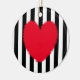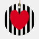 Rotes Herz auf schwarz-weiß gestreiftem Hintergrund