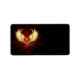 Helles rotes Herz eines Engels mit goldenen Flügeln, die im dunkelroten Hintergrund leuchten und mit einem Muster dekoriert sind.