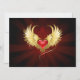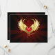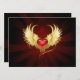 Helles rotes Herz eines Engels mit goldenen Flügeln, die im dunkelroten Hintergrund leuchten und mit einem Muster dekoriert sind.