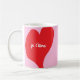 Rotes Herz mit je t’aime-Text auf rosa Hintergrund Kaffeetasse