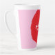 Rotes Herz mit je t’aime-Text auf rosa Hintergrund Milchtasse