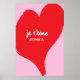 Rotes Herz mit je t’aime-Text auf rosa Hintergrund Poster
