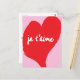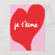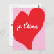 Rotes Herz mit je t’aime-Text auf rosa Hintergrund Postkarte