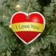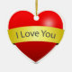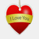 Rotes Herz mit Liebe, die Sie unterschreiben Keramikornament