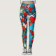 Rotes Herz und weiße Blume Türkis Blau Leggings