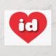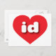 Diese Postkarte zeigt ein pulsierendes rotes Herz mit der fett-weißen, abgerundeten Buchstabennummer, die eine spielerische Abkürzung für den Staat von Idaho, dem Juwel Staat, darstellt. Die Rückseite der Postkarte ist leer und wartet auf Ihre handgeschriebenen Stimmungen oder Ihren personalisierten Text.