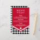 Rotes Hochzeitmenü mit schwarz-kariertem Muster