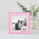 Rosa Save-the-Date-Karte für eine romantische Frühlings- oder Sommerhochzeit. Diese spielerische Fotoankündigung verbindet moderne minimalistische Ästhetik mit sanften femininen Farbtönen, perfekt für die freudige, modebewusste Braut, die eine stilvolle Gartenfeier plant. Kombinieren Sie sie mit rosafarbenen Umschlägen, kalligrafischer Adressierung und floralen Hochzeitseinladungen für ein helles und elegantes Papeterie-Set.