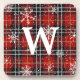 Rotes Kariertes Tartan-Snowflake-Monogramm Getränkeuntersetzer
