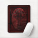 Ein keltisches Kreuz mit eingelegten Dreiheitsknoten und rotem Schmutzhintergrund.