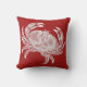 Ein Spaßkissen, das "klassisches Seestrandhaus" sagt. Dieses einfache Küstenartkissen stellt eine herrliche Vintage Illustration einer Krabbe im Weiß gegen einen roten Hintergrund zur Schau.