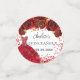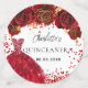 Für eine Quinceañera, 15. Geburtstagsparty. Weißer Hintergrund mit roten Konfetti, Kleid und rote Rosen, Blumenmuster. Der Name ist mit einem modernen handgeschriebenen Stilskript geschrieben. Personalisieren und fügen Sie Ihr Datum und ein Foto.
