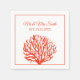 Rotes Korallenriff elegante Strand Hochzeit Party Napkins mit dem Namen der Braut und Bräutigam. Schönes Papier Serviette Design für Cocktailstunde oder Empfänge. Anpassbare Farben. Stilvolle Rahmen mit extravaganter Skripttextvorlage. Ideal für Hochzeiten zum Thema Wassersport oder Strand.