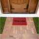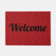 playful schwarze und grüne Kreise auf einem roten Hintergrund mit dem Text Willkommen in einem starken mutigen Schriftart. Rollen Sie heraus einen roten sprudelnden Teppich für Ihre Gäste.