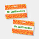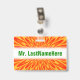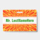 Diese vibrierenden, Energie- und ins Auge fallenden AbzeichenAusrüstungsbeschreibungen, die ein Explosion Ähnliches Berstmuster, das Farben kennzeichnet, rot mögen, Orange und Gelb. Es kennzeichnet auch einen kundengebundenen Namen in Grün farbigem Text innerhalb eines Weiß farbigen Bereichs. Ein Abzeichen so konnte von einem Lehrer, von einem Erzieher, von einem Tutor oder von einem Professor während der frühen Wochen eines Schuljahres oder des Kurses möglicherweise getragen werden. Es hülfe möglicherweise den Studenten, an den Namen ihres Lehrers zu lernen und sich zu erinnern. [~Z0000175]