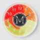 Rotes Orange Mosaik Modernes Monogramm Große Wanduhr