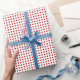 Rotes Punkt-Muster auf weißem Geschenk-Packpapier.
