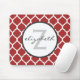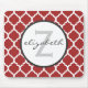 Rotes und weißes quatrefoil Muster mit grauem Monogramm.