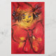 Farbiges, skurriles, lebendiges, künstlerisches Clownportrait mit extravagantem rotem Band, Aquarellmalerei in Rot, Gelb, Braun, inspiriert vom Karneval von Venedig. Elegantes Design, leicht mit Ihren Initialen und Ihrem eigenen Text zu gestalten.