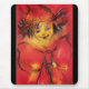 Farbiges, skurriles, lebendiges, künstlerisches Clownportrait mit extravagantem rotem Band, Aquarellmalerei in Rot, Gelb, Braun, inspiriert vom Karneval von Venedig. Elegantes Design, leicht mit Ihren Initialen und Ihrem eigenen Text zu gestalten.
