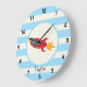 Rotes Rocket-Raum-Schiff; Hellblaue Streifen Große Wanduhr