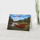 Rotes rustikales Kanu auf der Bank des Sees Karte