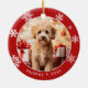 Feiern Sie Ihren Liebling in dieser Festtagszeit mit diesem charmanten doppelseitigen Keramik-Hunde-Foto-Schmuck, der mit einer festlichen roten Umrandung mit weißen Schneeflocken versehen ist. Dieser Schmuck ist die perfekte Möglichkeit, Ihrem pelzigen Familienmitglied zu ehren und Ihrem Weihnachtsbaum eine persönliche, freudige Note zu verleihen.