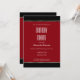 Eine moderne, raffinierte Party Einladung zum Geburtstagsessen in Rot und Schwarz mit weißen Texten und goldenen und silbernen Streifen.