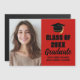 Eine personalisierte Abschlussankündigung in Form einer Magnetkarte in rot und schwarz für eine High School, ein College oder eine Universität von der Abschlussklasse 2026. Passen Sie den Namen Ihrer Schule und die Abschlussklasse unter der liebevollen Kalligrafie an, um einen eleganten, personalisierten Abschluss-Foto-Magneten mit Ihrem Seniorenporträt-Foto zu erstellen.