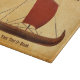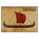 Ein Viking-Langschiff mit einem roten Segel, das von der rechten Seite aus im Profil gesehen wird und auf einem alten Papier-Hintergrundbild überlagert wird. "Carved hölzer" Text Lesung, "VIKINGAR" (Old Norse - VIKINGS) erscheint ebenfalls. Passen Sie Ihren eigenen Text an.