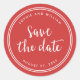 Rotes Skript und weiße Streifen Save the Date Runder Aufkleber