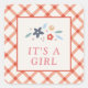 Entworfen zur Koordination mit der "Sweet Floral"-Geburtsanzeigen-Kollektion, zeigt dieser Aufkleber den Satz "It's a Girl" unter einem Bouquet aus zarten Blumen und Blättern. Der Text kann auf Wunsch angepasst werden. Das Design und der Text sind auf einem roten, handgezeichneten Gingham-Muster platziert. Diese hübschen Aufkleber sind perfekt zum Beschriften von Geschenken und Partygeschenken oder können zum Verschließen der passenden "Sweet Floral"-Geburtsanzeigen-Umschläge mit Adressfeld verwendet werden.