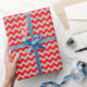 Ein Verpackungspapier mit rotem und grauem Zickzack Muster in mittlerer Größe. Sie können das Grau für eine andere Farbe ändern.