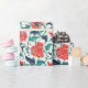 Dies ist ein farbenfroh Vintages Blumenmuster mit roten Blume und grünen Blätter auf weißem Hintergrund.