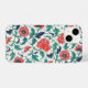 Dies ist ein farbenfroh Vintages Blumenmuster mit roten Blume und grünen Blätter auf weißem Hintergrund.