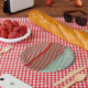 Rotes und grünes Muster Pappteller