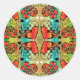 Rotes und grünes, weißes, romantisches Herzmuster Runder Aufkleber