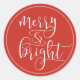 Moderner Weihnachtsaufkleber mit dem Begriff "fröhlich und hell" in einer weißen, weißlichen Schriftzeichen-Typografie auf rotem Hintergrund.