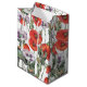 Das wunderschöne Muster zeigt ein "Feld" von lila und roten Mohnblüten in voller Blüte auf weißem Hintergrund
