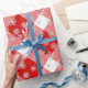 Rotes und Weißes Buffalo Kariert mit Schneeflocken Geschenkpapier