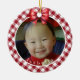 Rot-weiße Büffel kariert, aka Lumberjack kariert ist um den Rand dieses niedlichen Weihnachtsschmucks. Sie können das Ornament mit Ihrem Lieblings-Foto in der Mitte anpassen und mit ihrem Namen personalisieren. Oben ist ein roter Bogen mit weißen Polka-Punkten. Auf der anderen Seite steht: "Möge all die Freude an Weihnachten in deinen Herzen für alle Tage deines Lebens sein". Dann können Sie es mit Ihren Vornamen oder dem letzten und dem Jahr personalisieren.