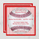 Die perfekte Geburtstags-Party Einladung für Baseballfans! Ausrüstungsbeschreibungen ein weißer Hintergrund mit roten Nadelstreifen. Es gibt rote Ordnung um den Rand der Einladung. Die Hauptausrüstungsbeschreibung ist ein großer Baseball mit rotem nähendem Set gegen den roten Buttonstreifenhintergrund. Innerhalb des Baseballs ist Text im roten Schriftart. Aller Text kann zum Anzug besonders angefertigt werden Ihr Bedarf. Die Rückseite der Einladung ist festes Rot mit weißer und roter Nadelstreifenordnung. Eine große All-Star- Einladung für Ihren kleinen Schläger!