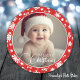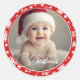 Rotes und weißes Schneeflocken Frohe Weihnachts-Fo Runder Aufkleber